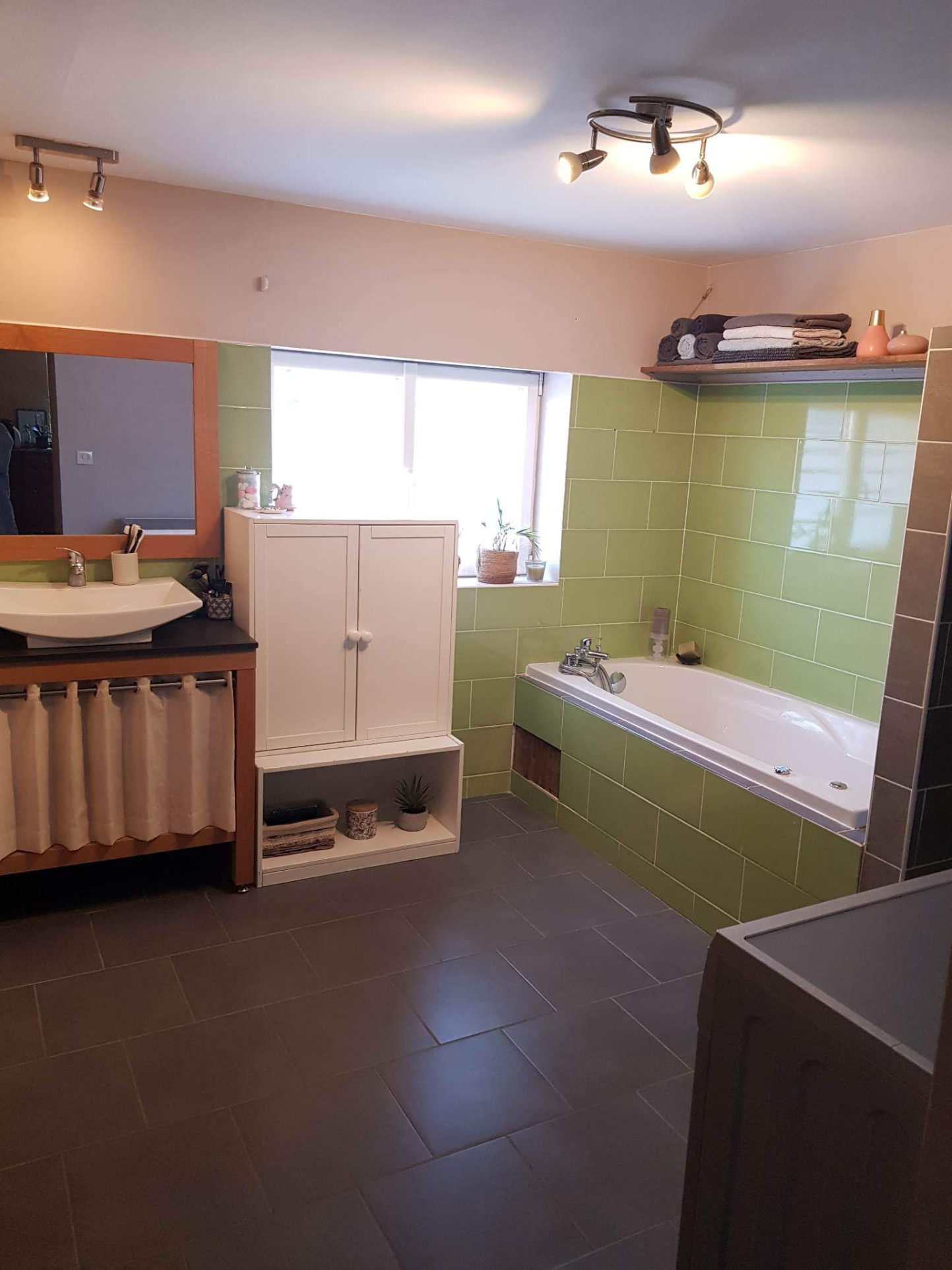 Proche des écoles et du centre la maison en très bon état propose deux belles pièces de vie plus une cuisine aménagée et équipée d'un four, d'une plaque, hotte et lave-vaisselle. Salle de bain